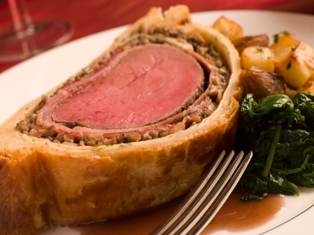 - Bake: Place the wrapped beef seam side down on a baking sheet. Bake for 25-30 minutes or until the pastry is golden brown. Let it rest for 10 minutes before slicing.